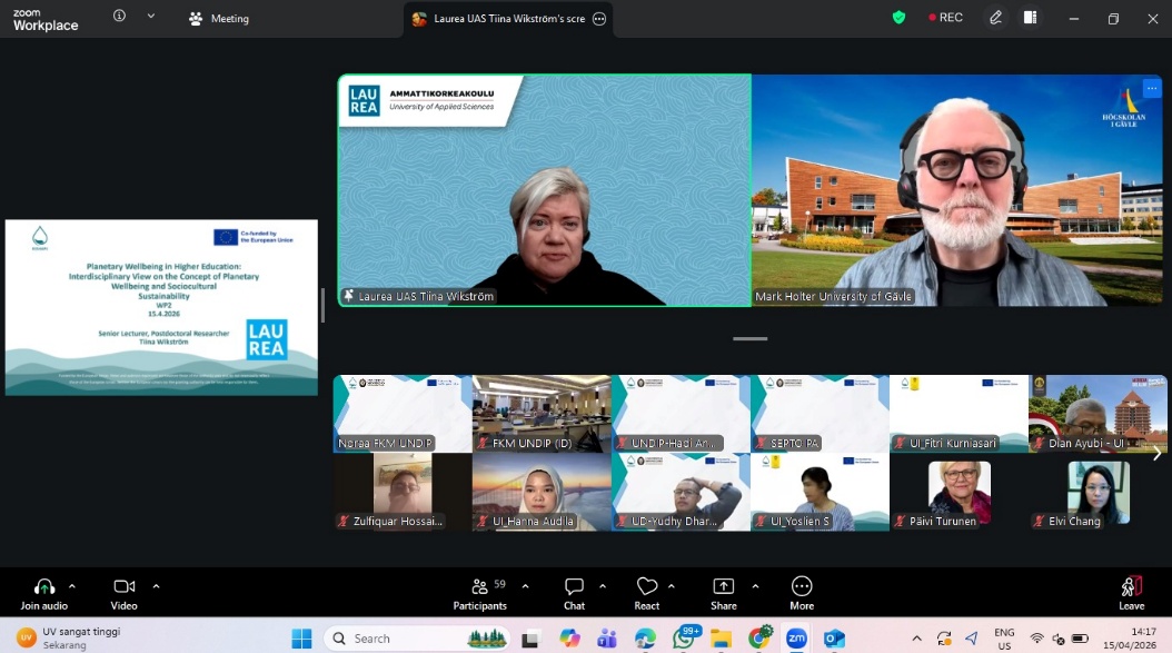 Semarang, April 15, 2026 – The Faculty of Public Health, Universitas Diponegoro (FKM UNDIP), conducted a Capacity Building Peer Group session as part of its participation in the International RESHAPE Program (Regenerating Socio-Cultural Sustainability and Planetary Wellbeing in Higher Education: A Global Partnership). The activity was attended by 25 participants, consisting of lecturers, administrative staff, and members of the Faculty Quality Assurance Team (TPMF), who actively engaged in online learning sessions with international partners.